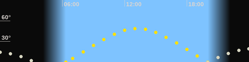 | Sonnenaufgang | 06:19 Uhr im Osten (αAz = 74°) |