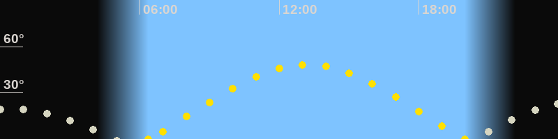 | Höchster Sonnenstand (Kulmination) | 13:11 Uhr (h = 48.4°) |