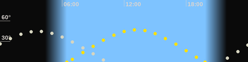 | Höchster Sonnenstand (Kulmination) | 13:09 Uhr (h = 46.9°) |