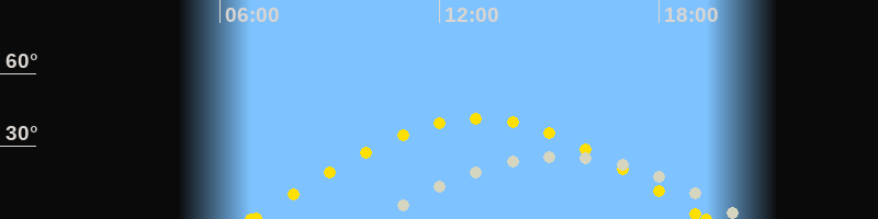 | Höchster Stand (Kulmination) | 15:20 Uhr (h=26.5°) |