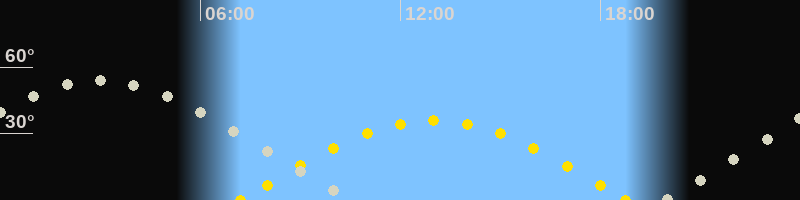 | Sonnenuntergang | 18:45 Uhr im Westen (αAz = 265.1°) |