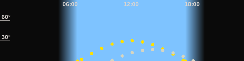 | Höchster Sonnenstand (Kulmination) | 12:55 Uhr (h = 30.2°) |