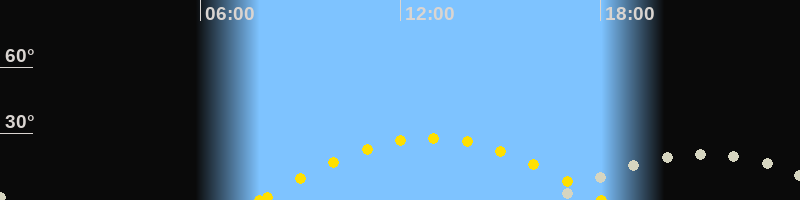 | Sonnenuntergang | 18:01 Uhr im Westen (αAz = 252.6°) |