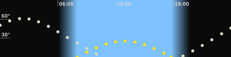 | Sonnenaufgang | 08:00 Uhr im Osten (αAz = 111.6°) |