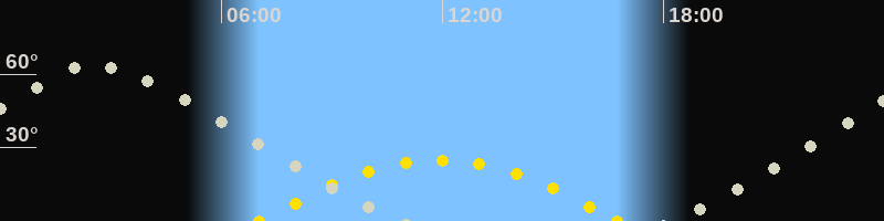 | Höchster Sonnenstand (Kulmination) | 11:53 Uhr (h = 25°) |