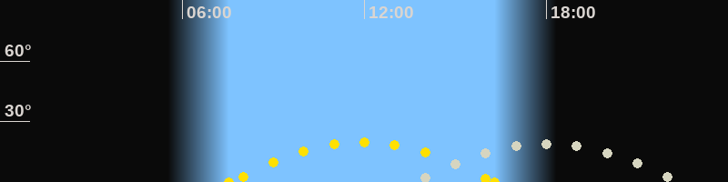 | Höchster Sonnenstand (Kulmination) | 11:55 Uhr (h = 19.9°) |