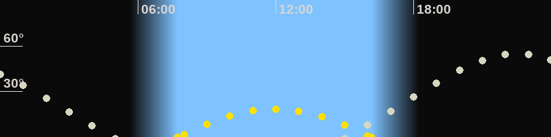 | Höchster Sonnenstand (Kulmination) | 11:57 Uhr (h = 18.6°) |