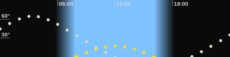 | Höchster Sonnenstand (Kulmination) | 11:59 Uhr (h = 17.4°) |