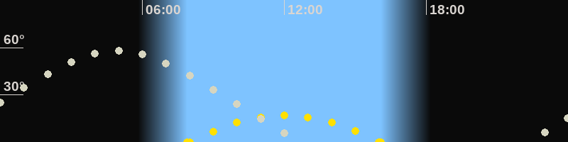 | Höchster Sonnenstand (Kulmination) | 12:00 Uhr (h = 17.1°) |
