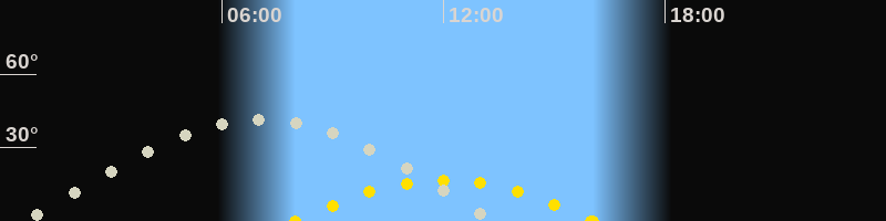 Höchster Sonnenstand (Kulmination)12:01 Uhr (h = 16.7°)