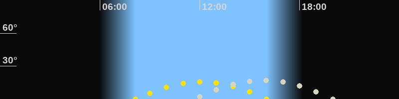 | Höchster Sonnenstand (Kulmination) | 12:05 Uhr (h = 16°) |