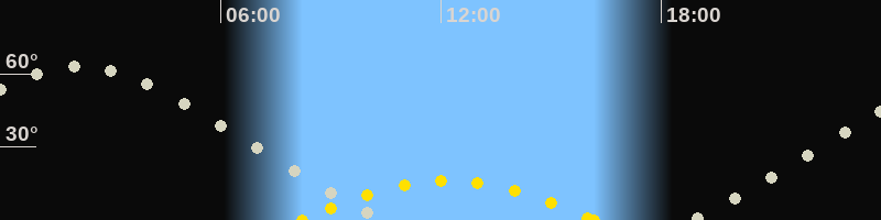 | Höchster Sonnenstand (Kulmination) | 12:12 Uhr (h = 16.1°) |