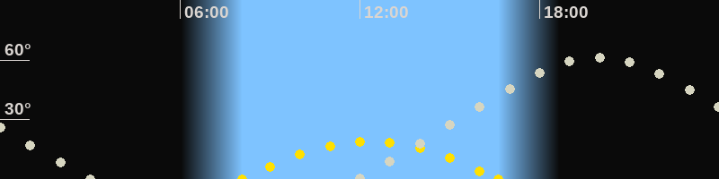 | Höchster Sonnenstand (Kulmination) | 12:21 Uhr (h = 19°) |