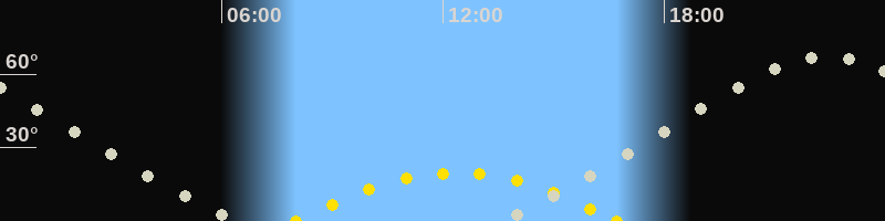 | Höchster Sonnenstand (Kulmination) | 12:21 Uhr (h = 19.7°) |