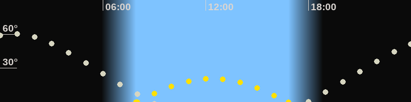 | Höchster Sonnenstand (Kulmination) | 12:22 Uhr (h = 20.7°) |