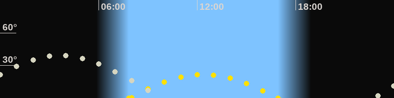 | Höchster Sonnenstand (Kulmination) | 12:23 Uhr (h = 21.7°) |