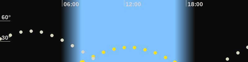 | Höchster Sonnenstand (Kulmination) | 12:23 Uhr (h = 21.5°) |