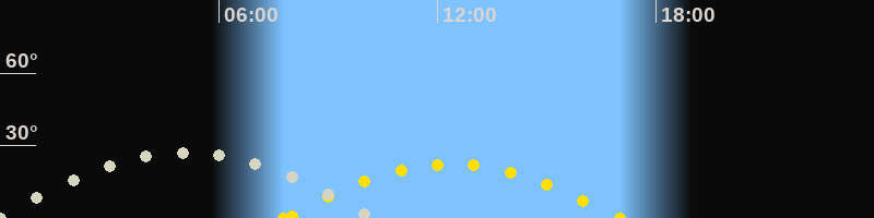 | Höchster Sonnenstand (Kulmination) | 12:23 Uhr (h = 22.3°) |