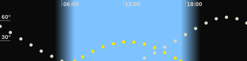 | Höchster Sonnenstand (Kulmination) | 12:23 Uhr (h = 28.5°) |