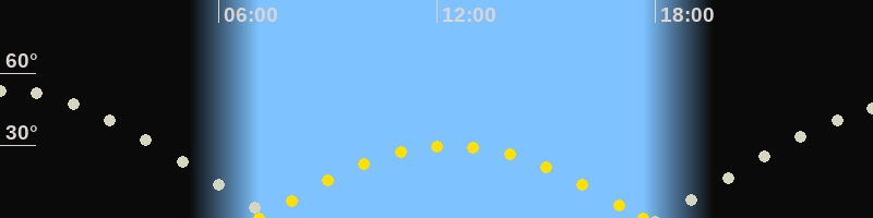 | Höchster Sonnenstand (Kulmination) | 12:23 Uhr (h = 30°) |