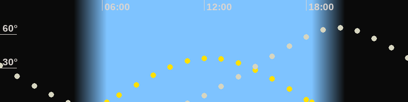 Höchster Stand (Kulmination)19:54 Uhr (h=65.9°)
