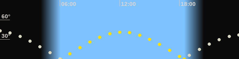 Höchster Sonnenstand (Kulmination)12:16 Uhr (h = 41.2°)