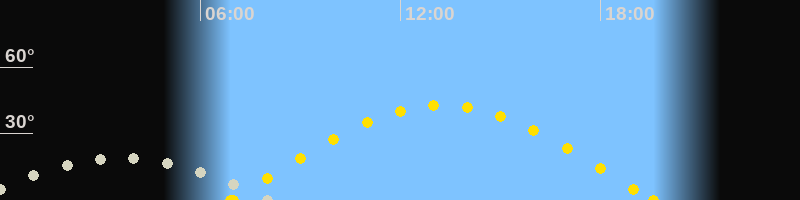 Höchster Sonnenstand (Kulmination)13:14 Uhr (h = 42.8°)