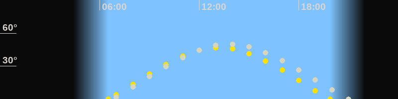 | Sonnenaufgang | 06:30 Uhr im Osten (αAz = 77.2°) |