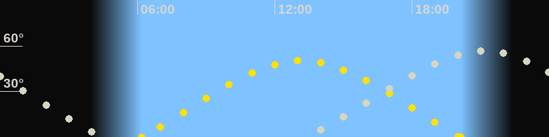 | Sonnenaufgang | 06:11 Uhr im Osten (αAz = 72°) |