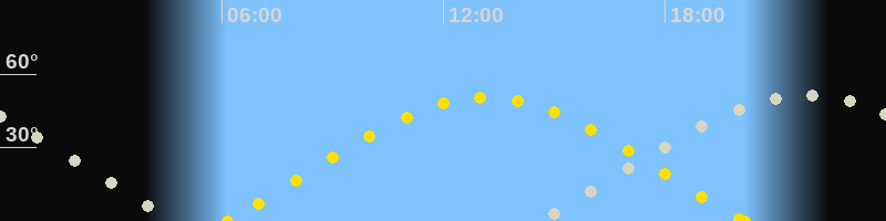 | Sonnenaufgang | 06:09 Uhr im Osten (αAz = 71.4°) |
