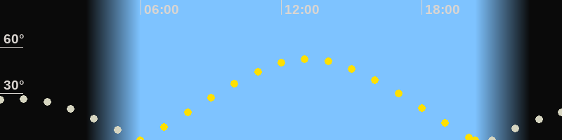 | Sonnenaufgang | 05:59 Uhr im Osten (αAz = 68.6°) |