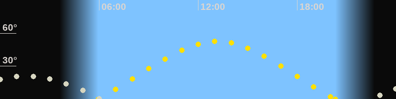 | Sonnenaufgang | 05:57 Uhr im Osten (αAz = 68.1°) |