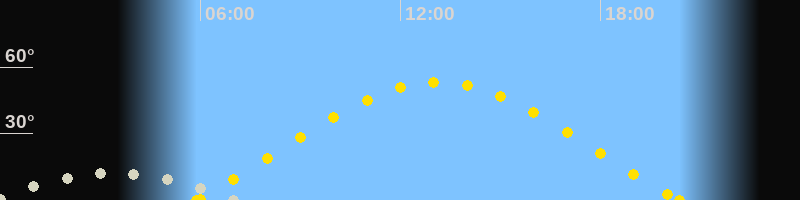 | Sonnenaufgang | 05:53 Uhr im Nordosten (αAz = 67°) |