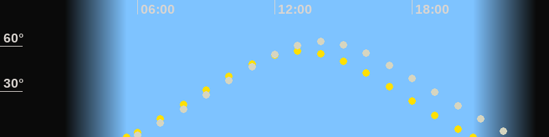 | Höchster Sonnenstand (Kulmination) | 13:06 Uhr (h = 56.7°) |
