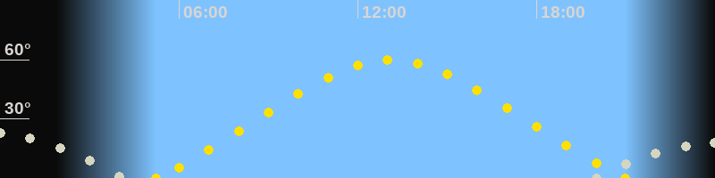 | Höchster Sonnenstand (Kulmination) | 13:06 Uhr (h = 59.7°) |