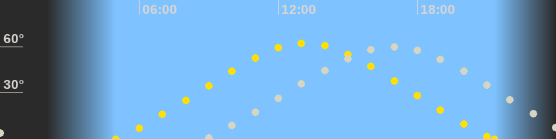 | Höchster Sonnenstand (Kulmination) | 13:09 Uhr (h = 62.4°) |