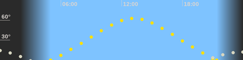 | Höchster Sonnenstand (Kulmination) | 13:11 Uhr (h = 62.7°) |
