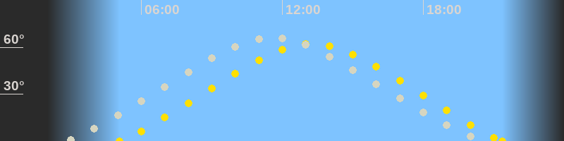 | Höchster Sonnenstand (Kulmination) | 13:14 Uhr (h = 62.1°) |