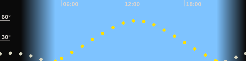 | Höchster Sonnenstand (Kulmination) | 13:16 Uhr (h = 59.7°) |