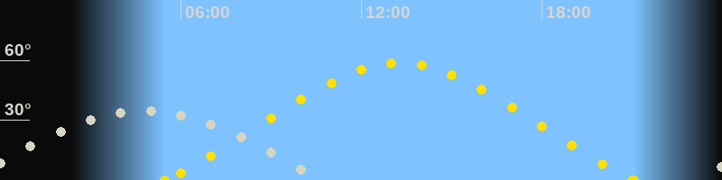 | Höchster Sonnenstand (Kulmination) | 13:16 Uhr (h = 58.8°) |