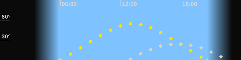| Höchster Stand (Kulmination) | 17:45 Uhr (h=25°) |