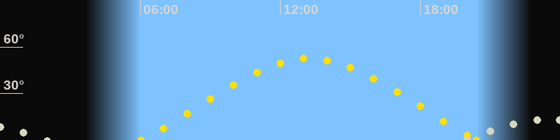 | Sonnenaufgang | 06:02 Uhr im Osten (αAz = 67.8°) |