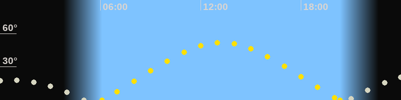 | Sonnenaufgang | 06:05 Uhr im Osten (αAz = 68.9°) |