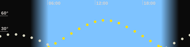 | Sonnenaufgang | 06:07 Uhr im Osten (αAz = 69.4°) |