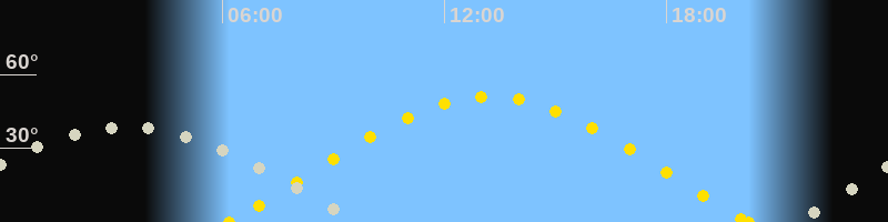 | Sonnenaufgang | 06:10 Uhr im Osten (αAz = 70.5°) |