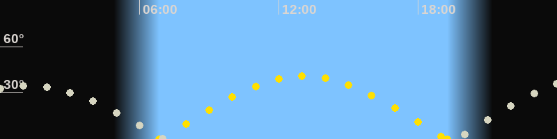 | Sonnenaufgang | 06:51 Uhr im Osten (αAz = 86.4°) |