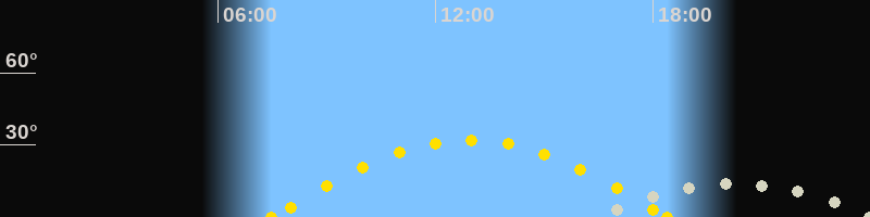 | Höchster Sonnenstand (Kulmination) | 12:56 Uhr (h = 32.1°) |