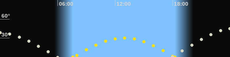 | Höchster Sonnenstand (Kulmination) | 12:55 Uhr (h = 30.2°) |