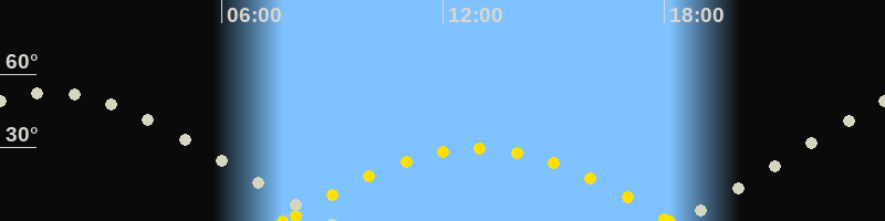 | Höchster Sonnenstand (Kulmination) | 12:55 Uhr (h = 29.5°) |