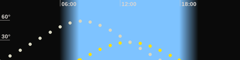 | Höchster Stand (Kulmination) | 08:10 Uhr (h=59.1°) |